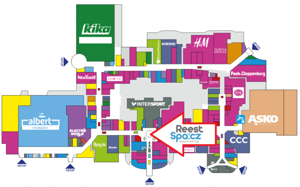 Umístění prezentace vířivek Softub; Central Court Brno Olympia